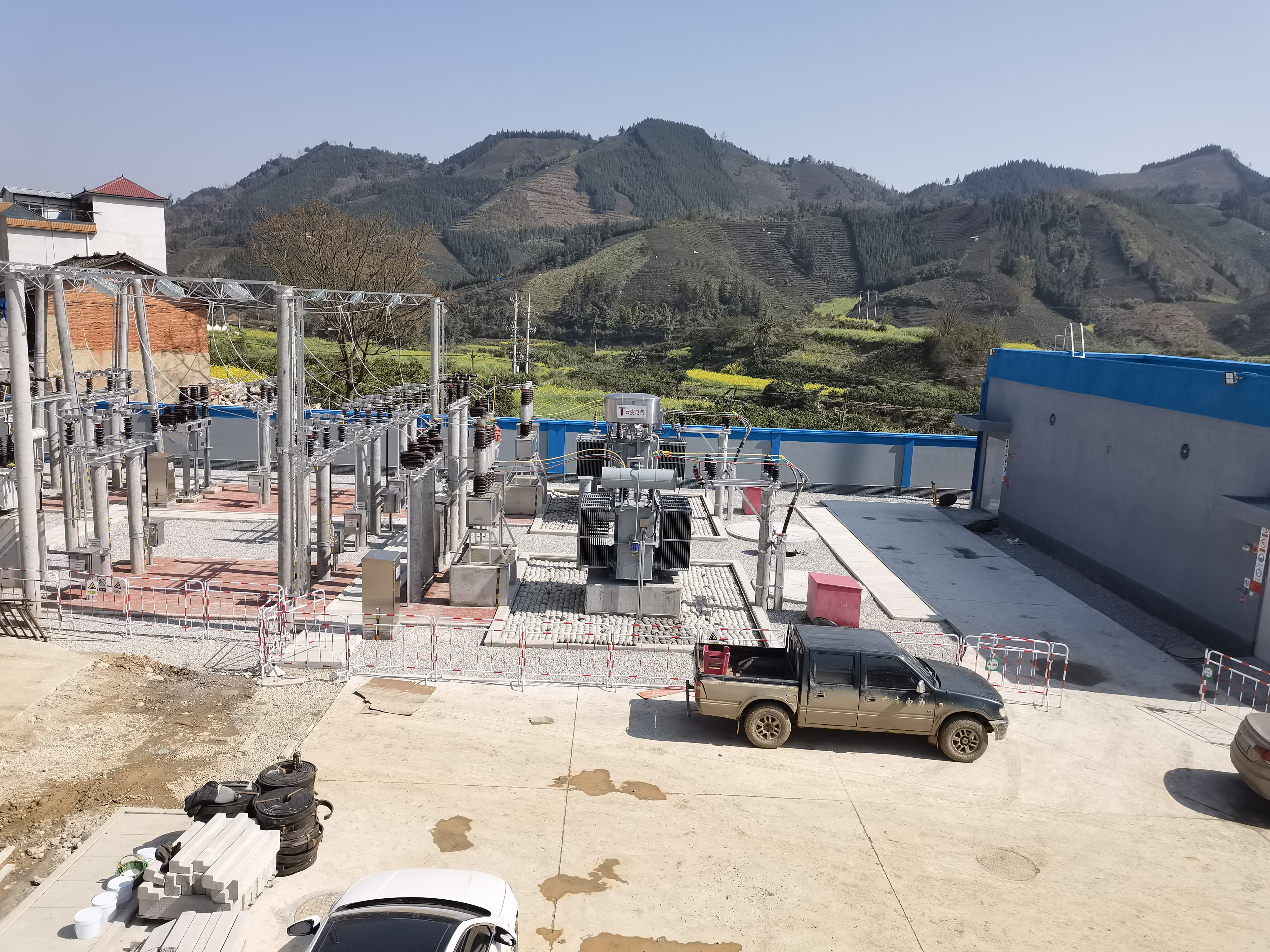 工程地貌及項(xiàng)目地情況:本工程地處文山州廣南縣堂上農(nóng)場(chǎng),毗鄰廣西百色西林縣,當(dāng)?shù)厥a(chǎn)橘子及茶葉。本工程歷時(shí)120日歷天,但晴天不足一月,夜間雨霧蒙蒙,嚴(yán)重影響土建施工進(jìn)度。堂上項(xiàng)目部克服當(dāng)?shù)氐臍夂蛴绊懀?/span>來(lái)自廣西百色及文山麻栗坡的疫情對(duì)項(xiàng)目的持續(xù)沖擊,迎難而上!在文山電力股份有限公司、昆明先行監(jiān)理有限責(zé)任公司、云南恒昌設(shè)計(jì)咨詢有限公司等各參建單位的大力支持下,新增2#主變、35kV一二次設(shè)備、10kV一二次設(shè)備及10kV出線線路于2022年2月18日投運(yùn)成功,并于2022年2月25日成功完成1#主變及10kV備自投設(shè)備投運(yùn)成功。